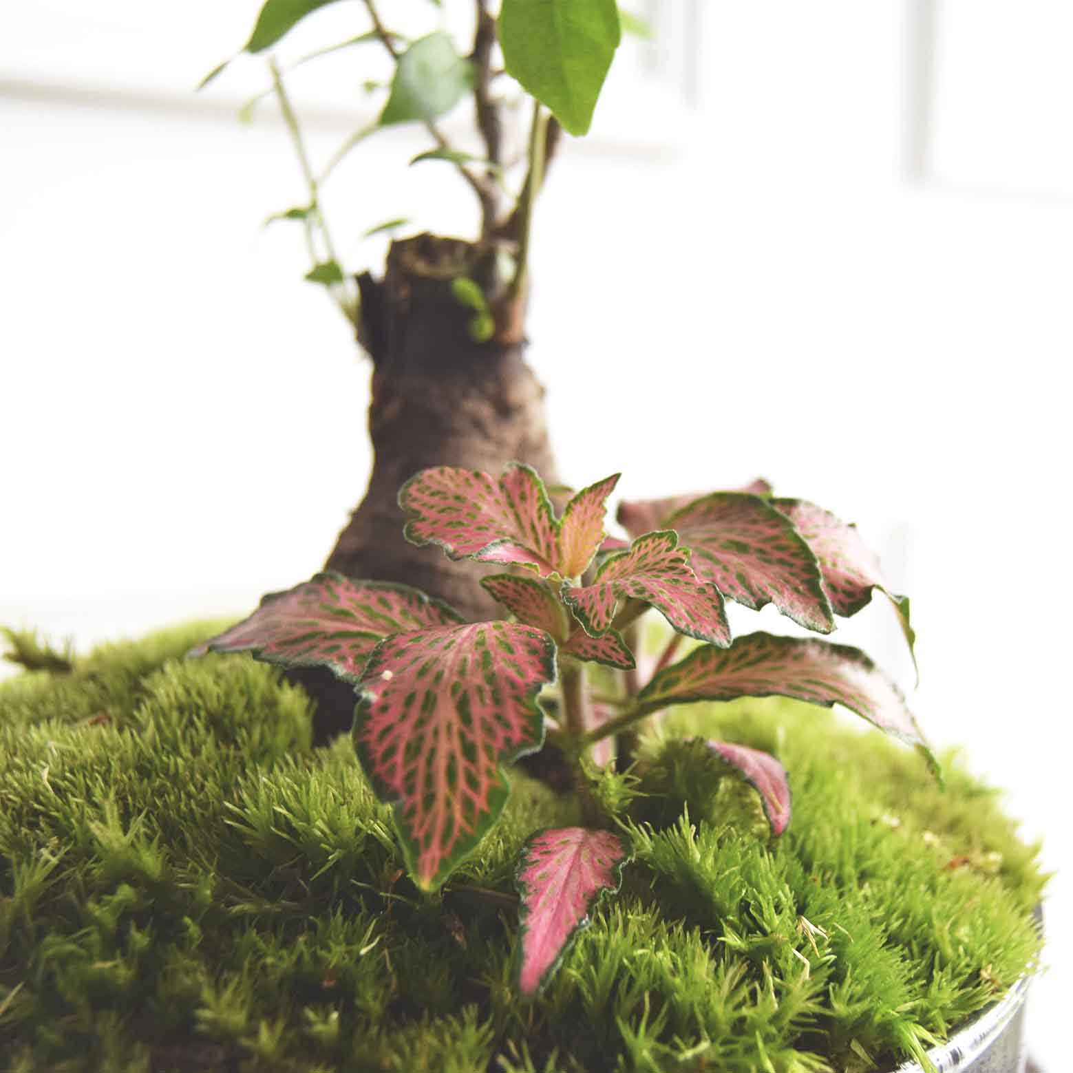 • Compuesto por Ficus Ginseng, Fitonia y musgo de roca: Una selección de plantas que aportan frescura y tranquilidad a cualquier espacio.